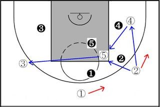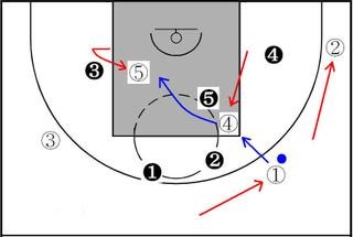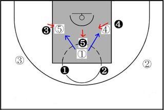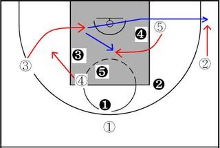 - 윙과 포스트에 볼이 투입되지 않으면 5번은 하이포스트로 라인으로 이동하고.